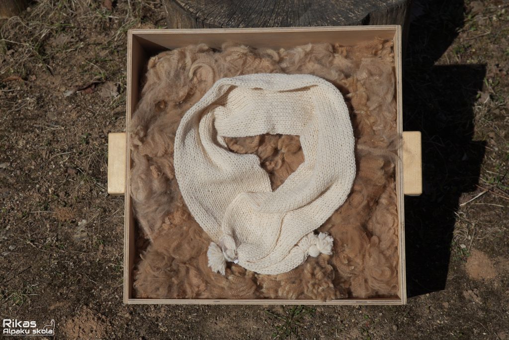 Light scarf that suits any kind of coat and protects from cold and wind very well. It is very warm and soft when close to skin.
