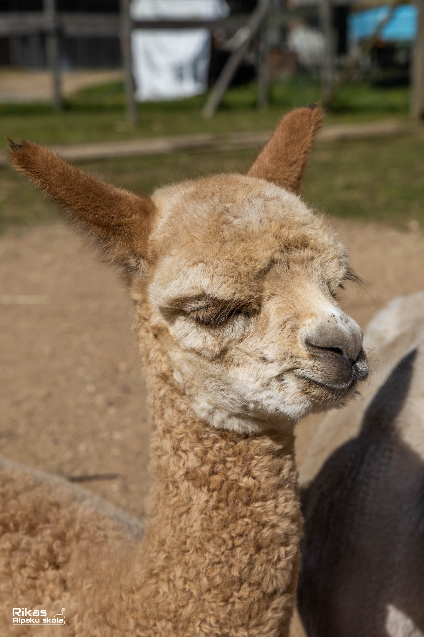 Even though the Spring is cold and windy, Feja uses the opportunities to sunbathe in the cover of other alpacas . ![]()